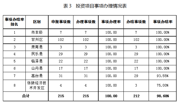 2026年1-2月,全市共申报事项215项,办理事项215项,办结事项212项,全市平均事项办理率为100%,平均事项办结率为98.6%(表3)。