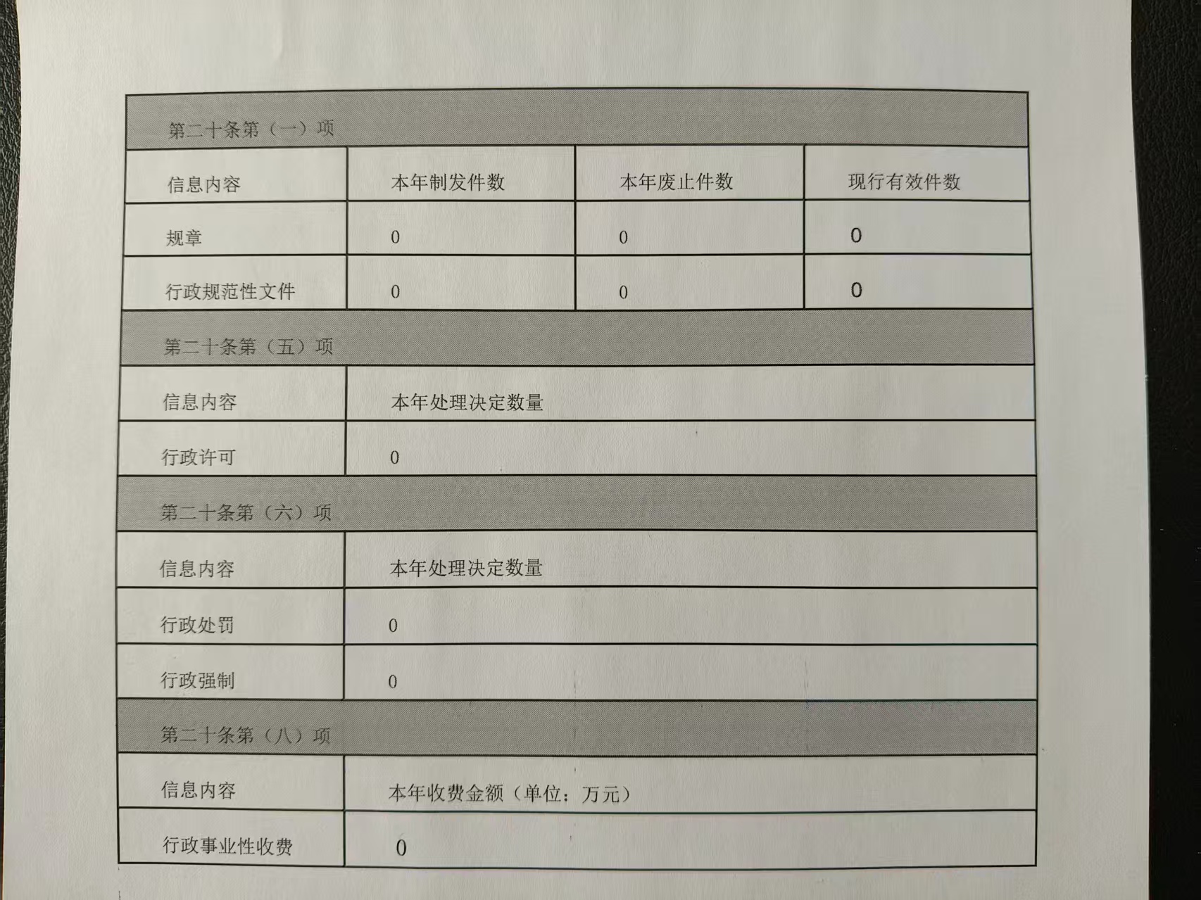 按照《国务院办公厅关于印发<政府信息公开信息处理费管理办法>的通知》(国办函〔2020〕109号)规定的按件、按量收费标准,本年度没有产生信息公开处理费。