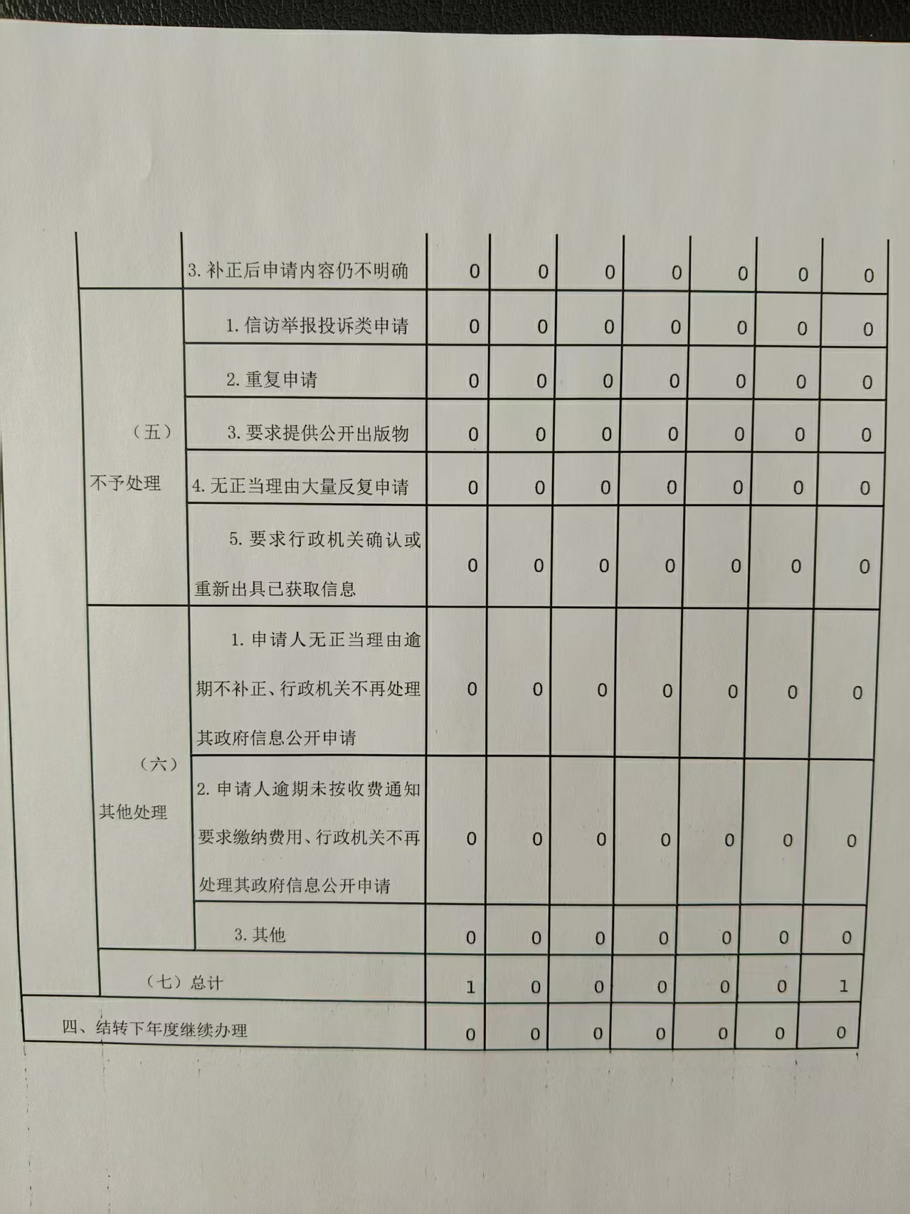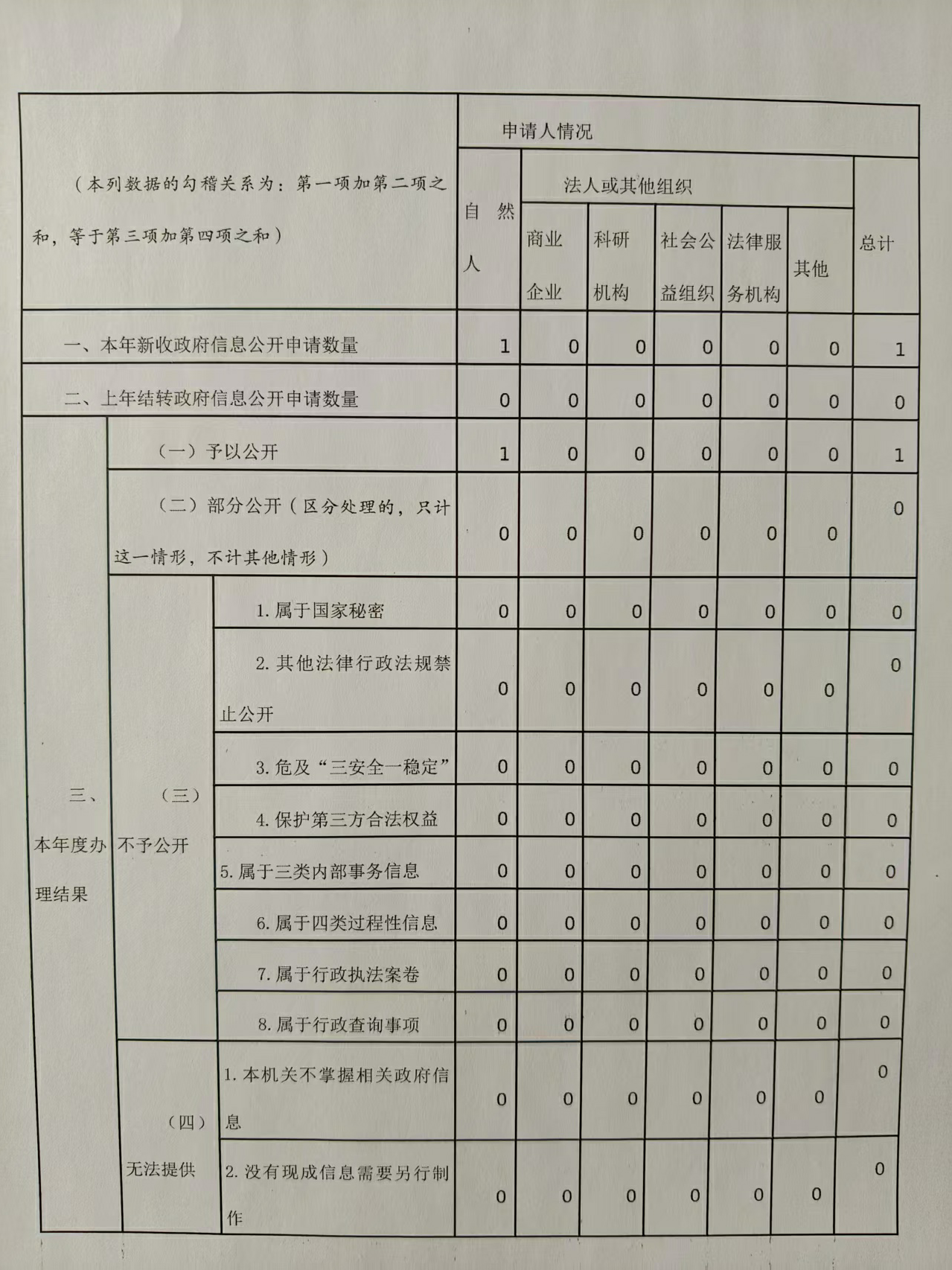 三、收到和处理政府信息公开申请情况