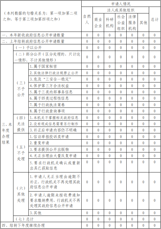 (二)依申请公开情况。按照《中华人民共和国政府信息公开条例》等规定,规范依申请公开信息工作流程,强化公开信息审核,严谨做好依申请公开政府信息答复工作,确保依申请公开信息得到及时准确答复。2025年度,我局未收到依申请公开事项。