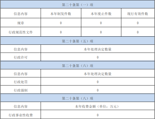 按照《国务院办公厅关于印发<政府信息公开信息处理费管理办法>的通知》(国办函〔2020〕109号)规定的按件、按量收费标准,我局本年度没有产生信息公开处理费。