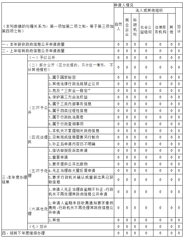 三、收到和处理政府信息公开申请情况