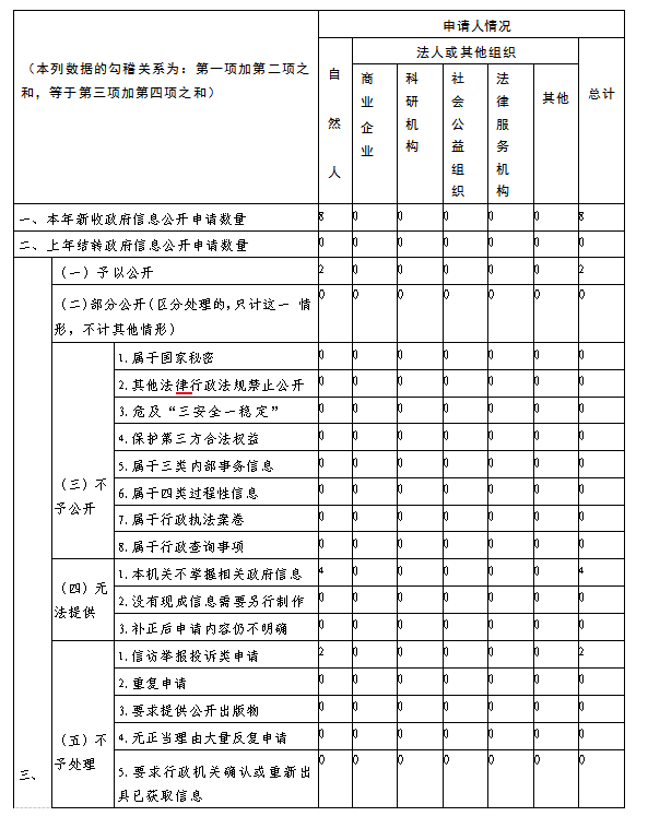 三、收到和处理政府信息公开申请情况