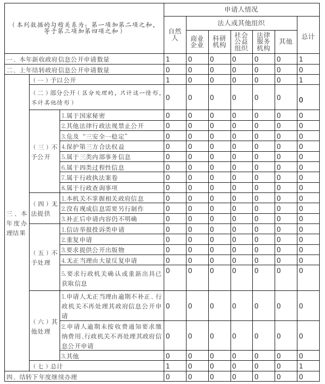 (二)依申请公开信息办理情况。不断规范依申请公开受理、答复程序,严格按照办理时限完成答复事项,全年共收到依申请公开信息1条,已按时答复办结。