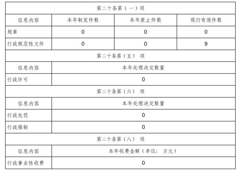 按照《国务院办公厅关于印发<政府信息公开信息处理费管理办法>的通知》(国办函〔2020〕109号)规定的按件、按量收费标准,本年度没有产生信息公开处理费。