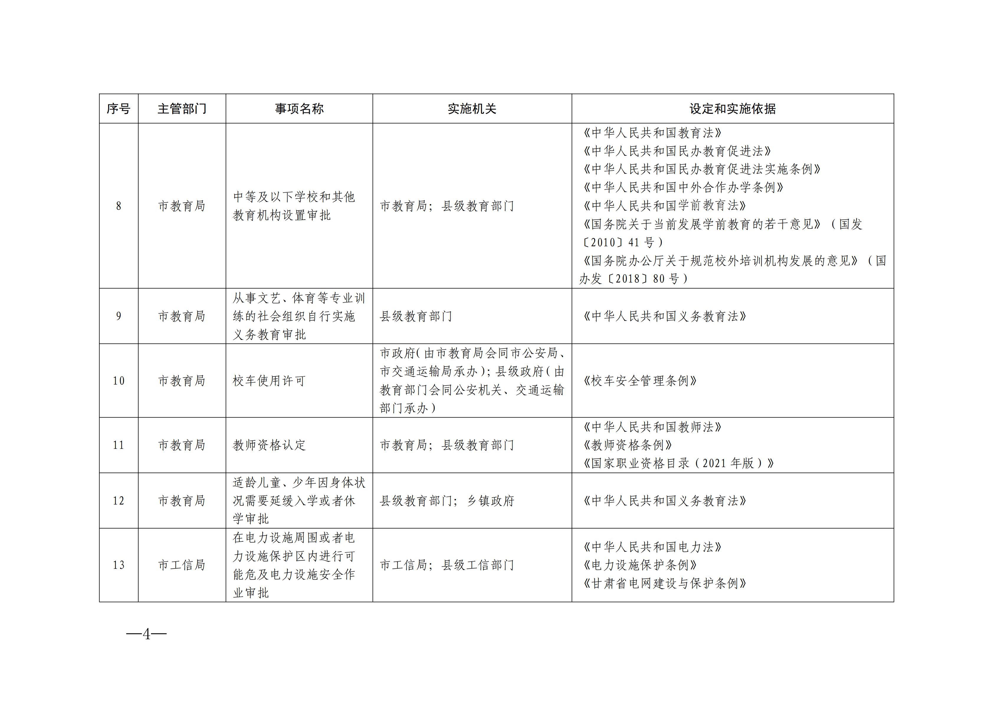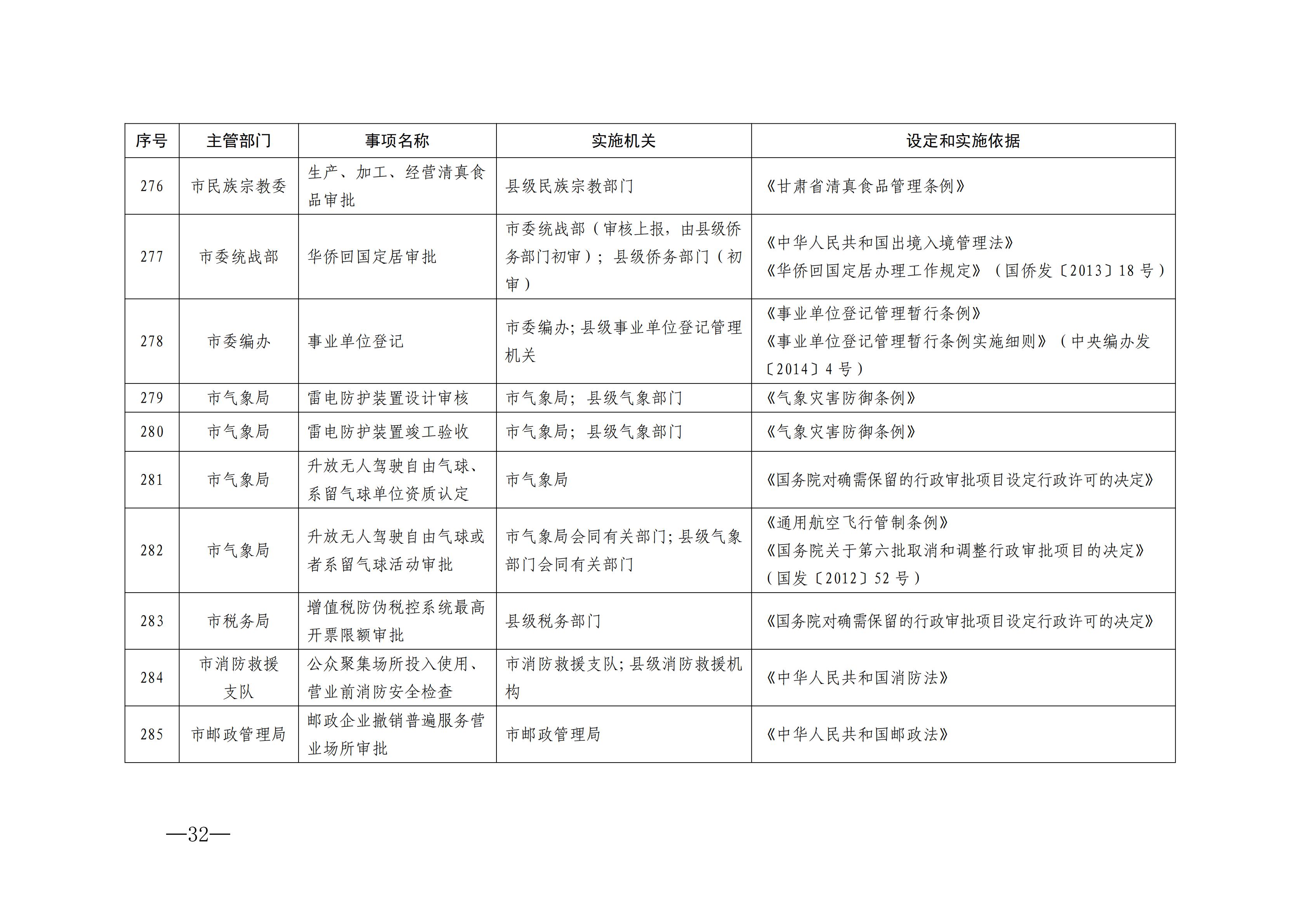 根据《甘肃省人民政府办公厅关于公布甘肃省行政许可事项清单(2025年版)的通知》(甘政办发〔2025〕62号),市政府办公室结合我市实际,修订形成《张掖市行政许可事项清单(2025年版)》,经市政府同意,现予公布。