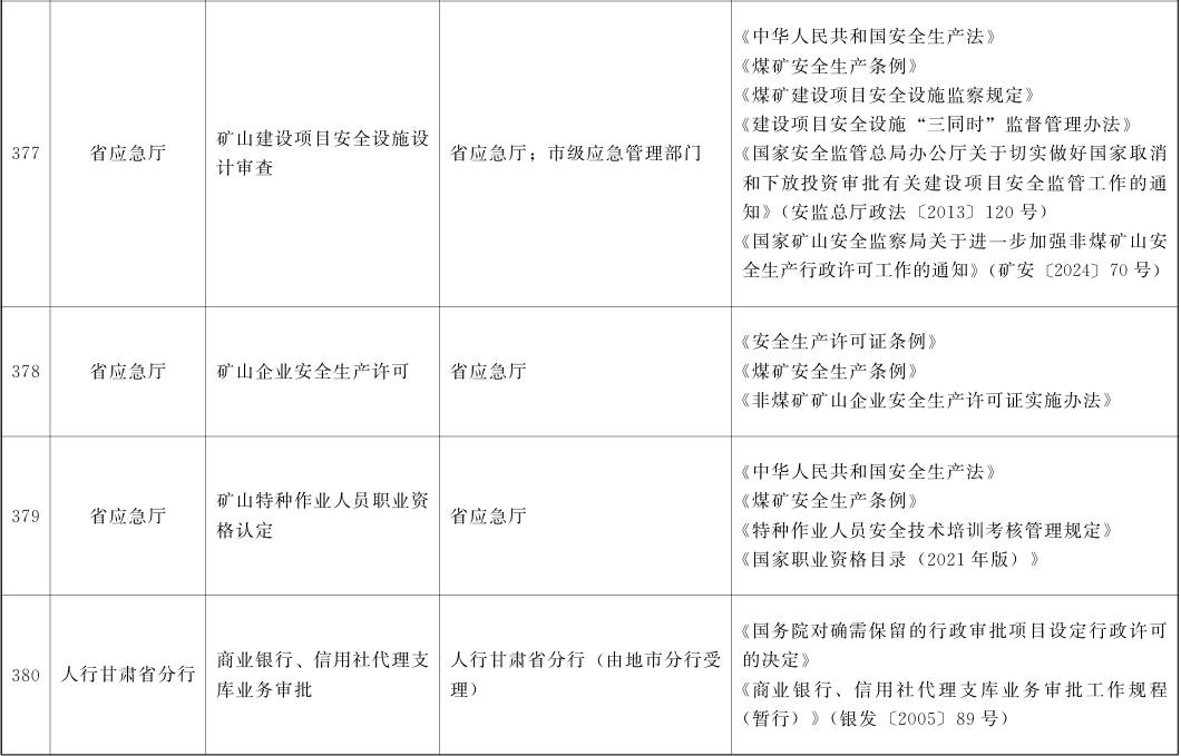 甘肃省行政许可事项清单(2025年版)