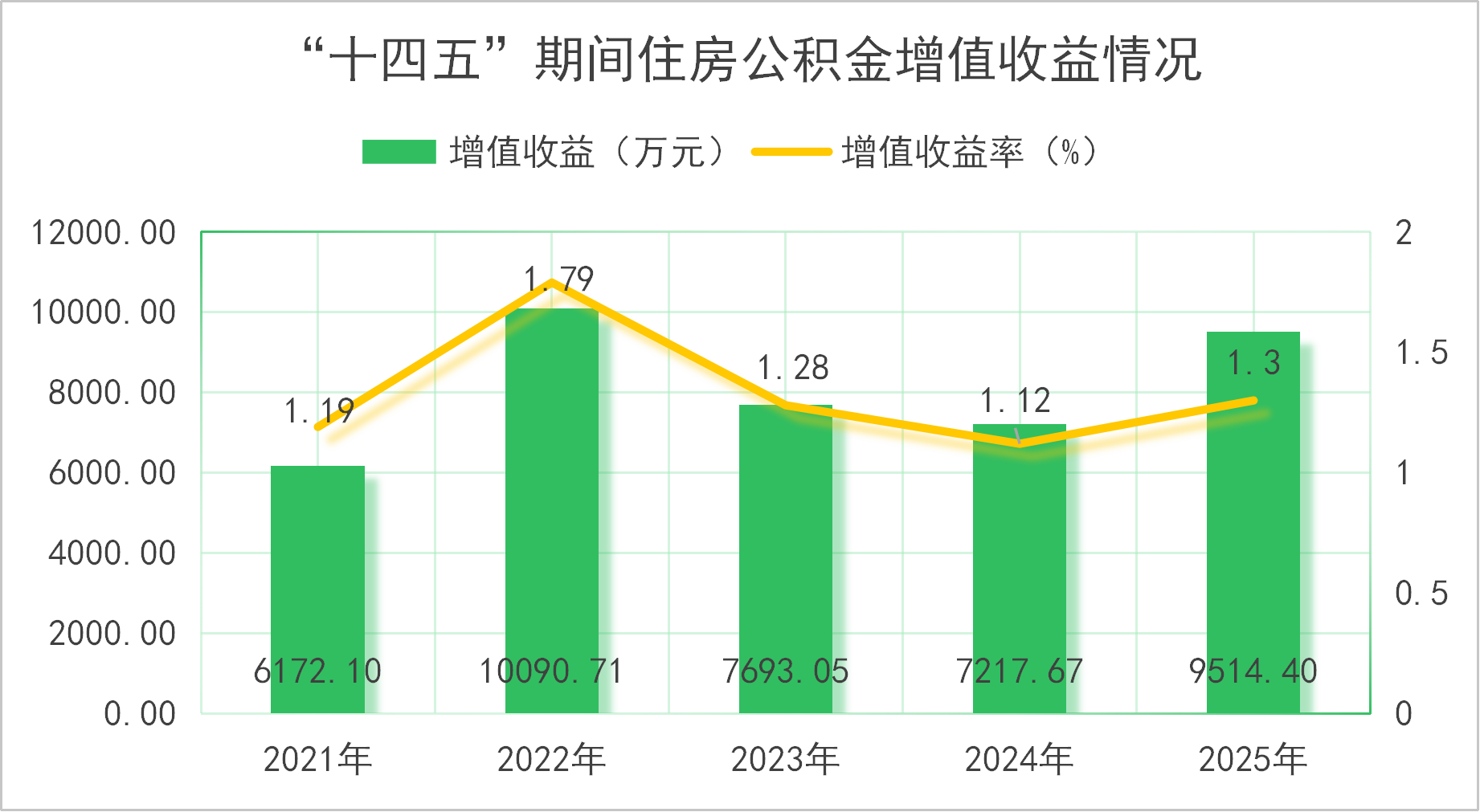 保障资金安全是住房公积金管理工作的首要任务和核心职责,张掖中心始终坚守资金安全底线,牢固树立风险防范意识,持续健全风险防控体系、全面提升风险管控效能,坚决守护好广大缴存人的合法权益与“钱袋子”,为民生保障与社会稳定筑牢坚实安全屏障。2025年,业务收入20672.59万元,业务支出11158.19万元,增值收益9514.4万元,同比增长28.13%,增值收益率1.30%,实现了资金安全运营与保值增值有机统一。全年提取城市廉租住房(公共租赁住房)建设补充资金7214.4万元,上缴财政城市廉租住房(公共租赁住房)建设补充资金7375.65万元(含2024年未上缴的175.65万元),有效助推全市保障性住房建设提质提速。